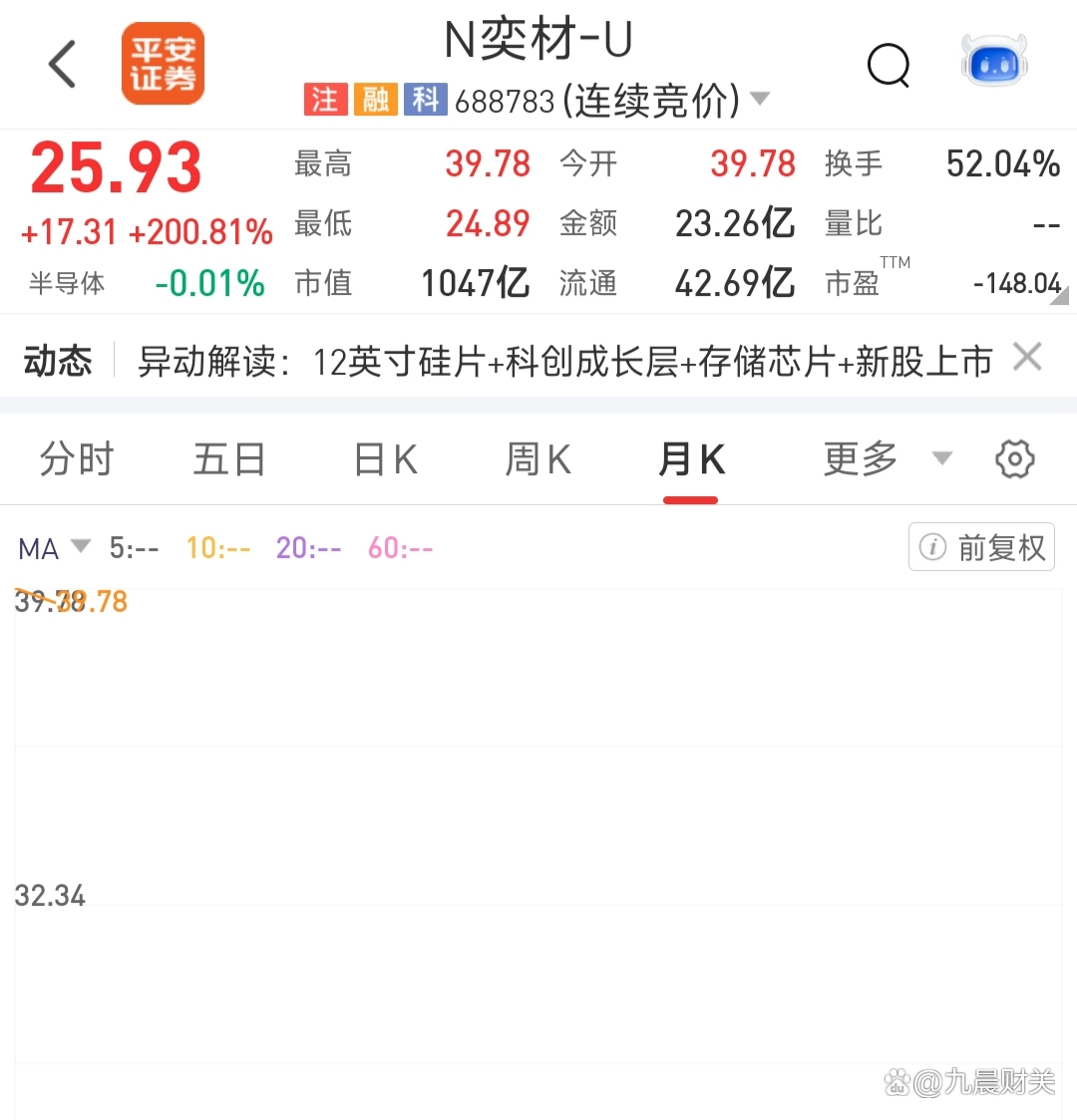 西安奕材-U表现最为抢眼,开盘价39.78元,较发行价8.62元暴涨361.48%。