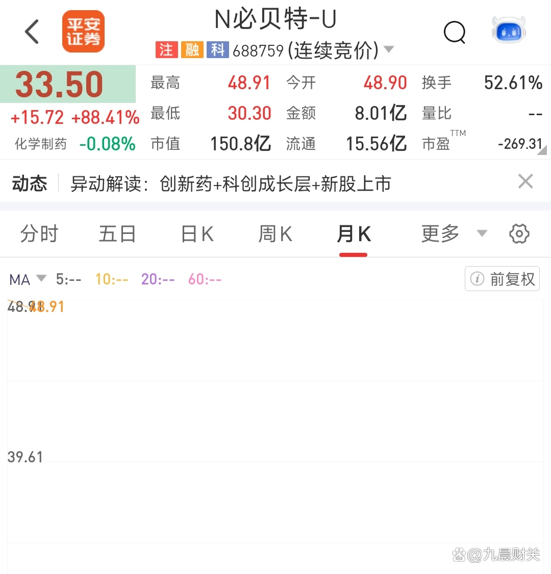 N禾元-U开盘价88.00元,较发行价29.06元上涨202.82%;N必贝特-U开盘价48.90元,较发行价17.78元上涨175.03%。
