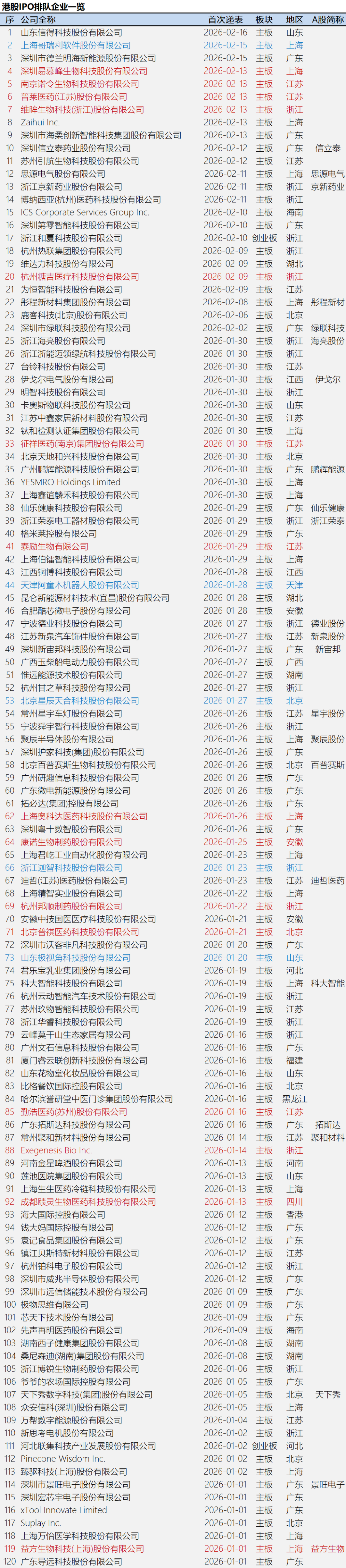 2026年1月1日至今,已有120家企业向港交所首次递表。