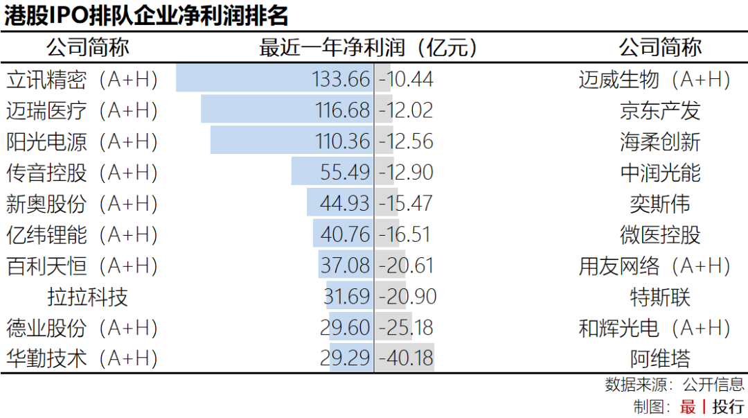 港交所IPO排队企业中未盈利企业数量较多,拉低了净利润的中位数;