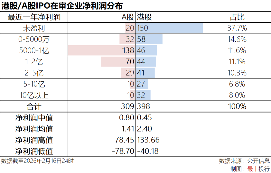 港股IPO排队企业的净利润平均值高于A股(1.41亿),而中位数则低于A股(0.80亿)