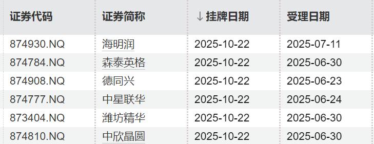 证券时报消息,中欣晶圆、海明润、森泰英格、德同兴、中星联华、潍坊精华——这六家来自高端制造、新材料、半导体等领域的企业,同时在昨天完成新三板挂牌仪式。